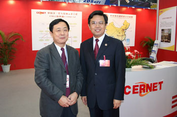 CERNET專家委員會主任吳建平教授與廣東省教育廳副廳長羅遠芳在CERNET展位 |