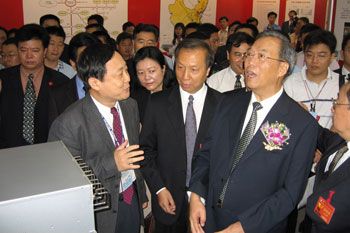 | CERNET專家委員會主任吳建平教授向政治局委員、國務院副總理曾培炎、 教育部副部長趙沁平介紹中國下一代互聯網建設情況 |