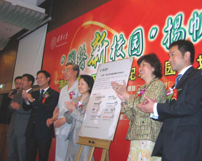 國家發改委、教育部、清華大學的領導與賽爾網絡董事長梁猷能先生、合作廠商、銀行代表共同啟動“網絡新校園”計劃
