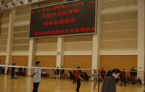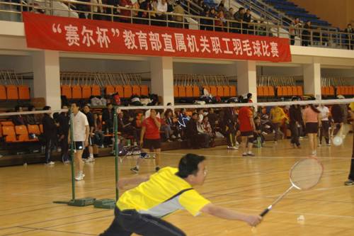 由教育部直屬機(jī)關(guān)工會(huì)主辦、教育部科技發(fā)展中心承辦、賽爾網(wǎng)絡(luò)有限公司協(xié)辦的“2007年‘賽爾杯’教育部直屬機(jī)關(guān)職工羽毛球比賽”于11月14日在北京郵電大學(xué)羽毛球館正式開球比賽。來自教育部機(jī)關(guān)、直屬單位的31個(gè)代表隊(duì),以及20多位司局長參加比賽。本屆比賽持續(xù)三天,將在16日進(jìn)行決賽與頒獎(jiǎng)。