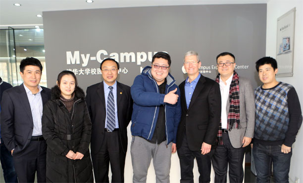 “哇,那不是庫(kù)克嗎?”一個(gè)女生尖叫,引起所有正在熱烈探討問(wèn)題的人們的注意力。循聲望去,一位身形矯健,頭頂銀發(fā)的神秘人士信步向西區(qū)文化長(zhǎng)廊商鋪前走來(lái),越來(lái)越近,越來(lái)越清晰,他那陌生而又熟悉的面孔,沒(méi)錯(cuò)!真的就是大名鼎鼎的蘋果公司首席執(zhí)行官蒂姆·庫(kù)克先生!Apple老板?蘋果店?路過(guò)?有計(jì)劃訪問(wèn)?一屋子的“果粉”心里跑滿了小鹿,近了又近了,他真的會(huì)邁進(jìn)店里嗎?我們今天真的有幸可以近距離接觸這位Apple大咖嗎?還沒(méi)回過(guò)神來(lái),一只熱情的大手已經(jīng)伸到店長(zhǎng)楊陽(yáng)面前--握手,問(wèn)候,幸會(huì)之情洋溢滿屋。