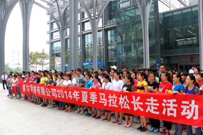 2014年8月29日在奧林匹克森林公園南園,一場以"為祖國健康工作五十年"為主題的 "賽爾網絡有限公司2014年夏季馬拉松長走活動"火熱開賽。上午8時許,由總經理吳建平和公司諸位高管一起領走,一支400余人的長走隊伍浩蕩登場。