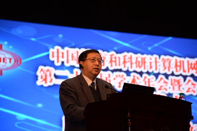 CERNET專家委員會(huì)主任、清華大學(xué)教授吳建平做《CERNET新進(jìn)展和未來發(fā)展思考》的報(bào)告