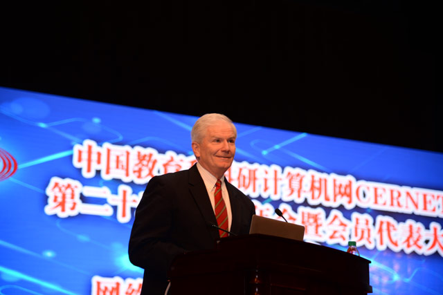 教育部科技司司長(zhǎng)王延覺在致辭中表示,CERNET作為我國(guó)教育信息化和國(guó)家信息化的重要基礎(chǔ)設(shè)施,同樣面臨轉(zhuǎn)型發(fā)展的挑戰(zhàn),如何從跟蹤模仿到創(chuàng)新發(fā)展和引領(lǐng)發(fā)展,如何在即將開始的"十三五"乃至今后的十年、二十年,為中國(guó)的互聯(lián)網(wǎng)發(fā)展和信息化進(jìn)程作出更大的貢獻(xiàn),是全體CERNET成員必須認(rèn)真思考的重大問題。借此機(jī)會(huì),他對(duì)CERNET提出了三點(diǎn)希望:一是不斷提升CERNET的網(wǎng)絡(luò)質(zhì)量與服務(wù)水平,積極支持各類教學(xué)和管理應(yīng)用,為"十三五"期間全面推動(dòng)教育信息化工作,為構(gòu)建網(wǎng)絡(luò)化、數(shù)字化、個(gè)性化、終身化的教育體系,提供更先進(jìn)、更安全的網(wǎng)絡(luò)環(huán)境;二是聯(lián)合CERNET各節(jié)點(diǎn)高校,承擔(dān)國(guó)家未來網(wǎng)絡(luò)重大科技基礎(chǔ)設(shè)施和網(wǎng)絡(luò)空間安全重大科技項(xiàng)目,繼續(xù)推動(dòng)下一代互聯(lián)網(wǎng)的發(fā)展和技術(shù)創(chuàng)新,保持在國(guó)際國(guó)內(nèi)的技術(shù)領(lǐng)先優(yōu)勢(shì),爭(zhēng)取為國(guó)家做出更大貢獻(xiàn);三是吸引更多年輕人參與互聯(lián)網(wǎng)技術(shù)研究,鼓勵(lì)開發(fā)創(chuàng)新型應(yīng)用,培養(yǎng)更多國(guó)家需要的網(wǎng)絡(luò)信息安全和網(wǎng)絡(luò)技術(shù)創(chuàng)新人才。