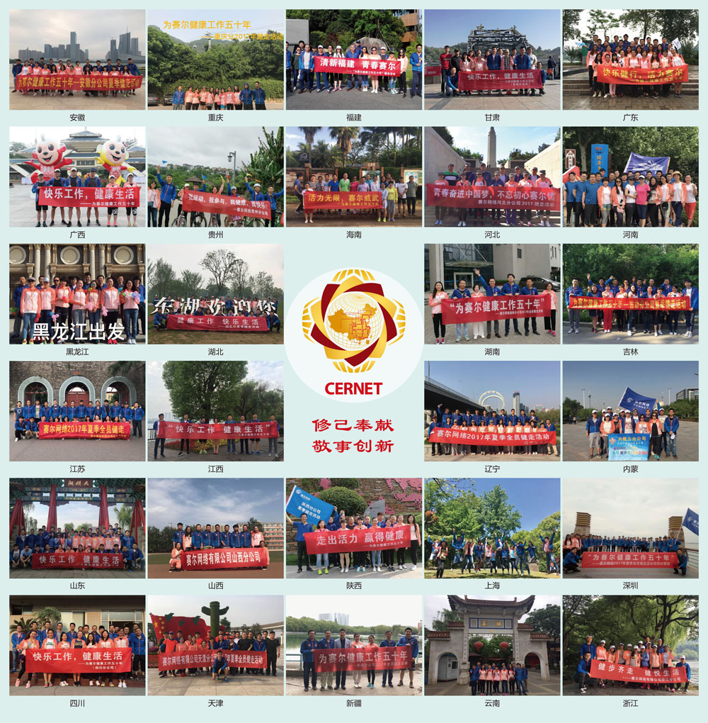 2017年5月19日,以"為賽爾健康工作五十年"為主題的賽爾網絡2017年夏季全員健走活動在北京和全國29個分公司拉開帷幕,活動在全國30個城市同時進行,參與人數達1160余人。