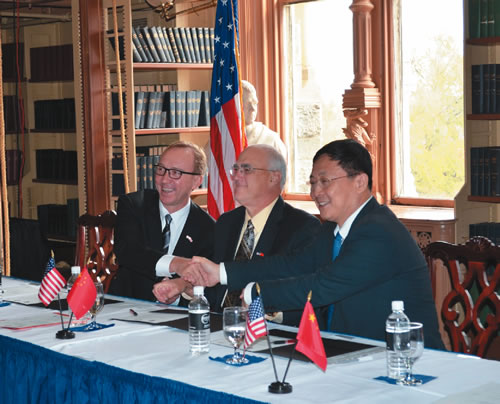 2011年11月4日,CERNET國家網(wǎng)絡中心主任吳建平教授在華盛頓喬治城大學與美國印第安納大學副校長BradWheeler、美國Internet2CEODaveLambert會面,共同慶祝中美學術網(wǎng)絡高速